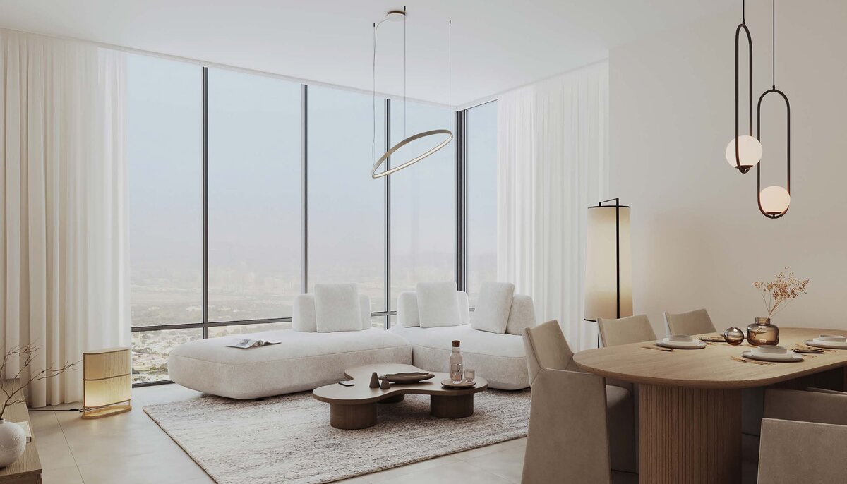 Distinctive Elements: Cascading garden terraces giving each residence private outdoor space, panoramic skyline views capturing Dubai’s expanding southern skyline, swimming pool for residents, and fully-equipped gym facilities