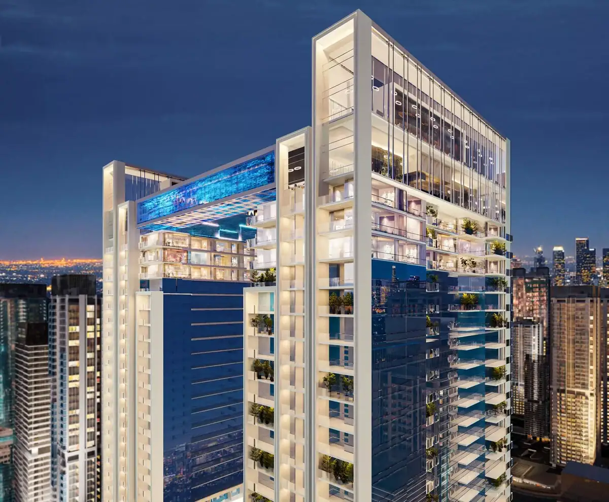 Danube’s collaboration with Aston Martin represents their move into branded luxury territory. These twin towers in JLT bring automotive design aesthetics to residential living with sweeping Dubai skyline vistas.