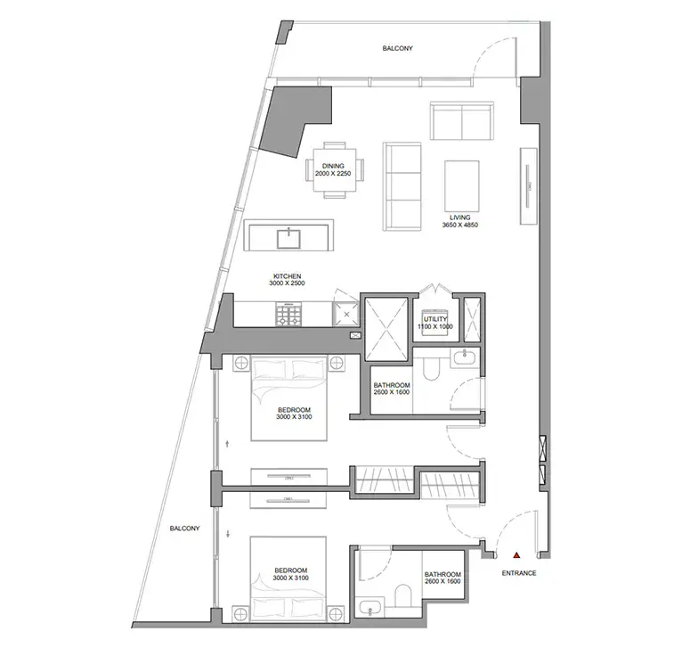 - Offers 2 bedroom apartments starting from 956 sq ft, priced from AED 2.48M.